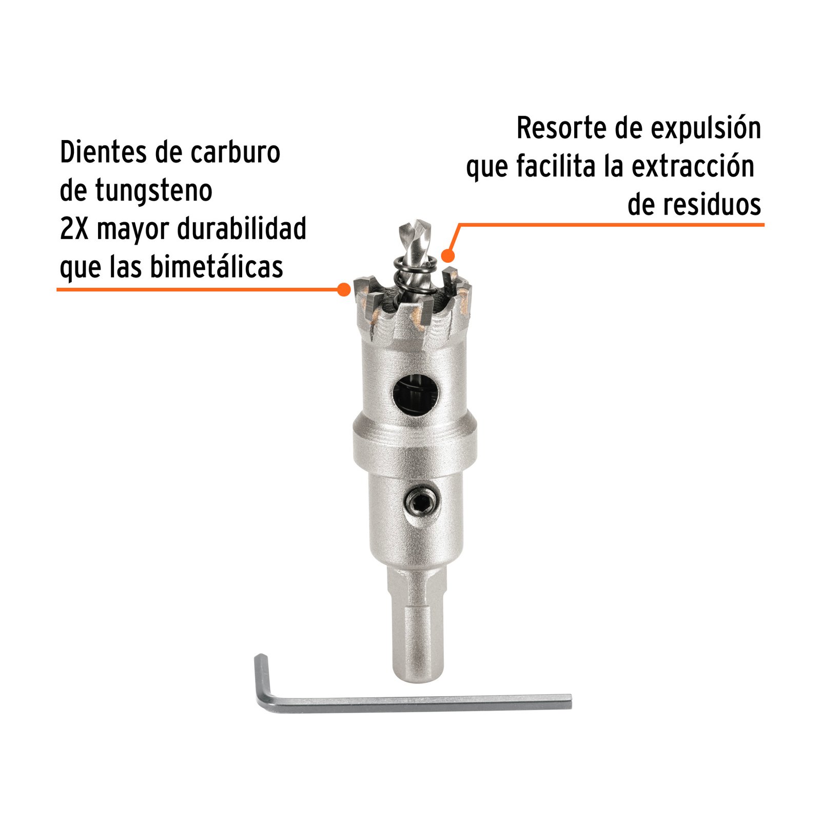 • Broca piloto fabricada en acero M2, 3X mayor vida útil