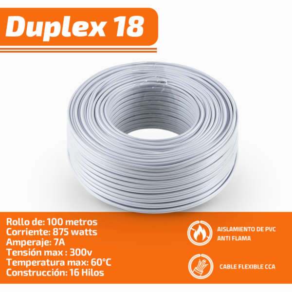 Cable Pot Duplex Calibre 18 De 100 Metros