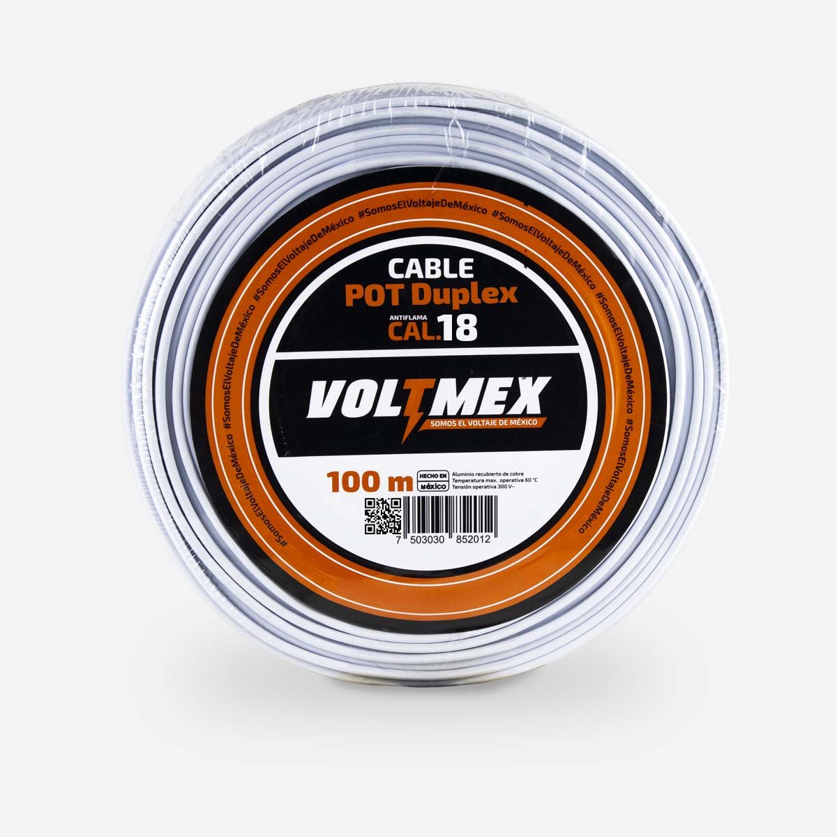 Rollo de cable eléctrico dúplex flexible POT calibre 18 AWG con 100 metros