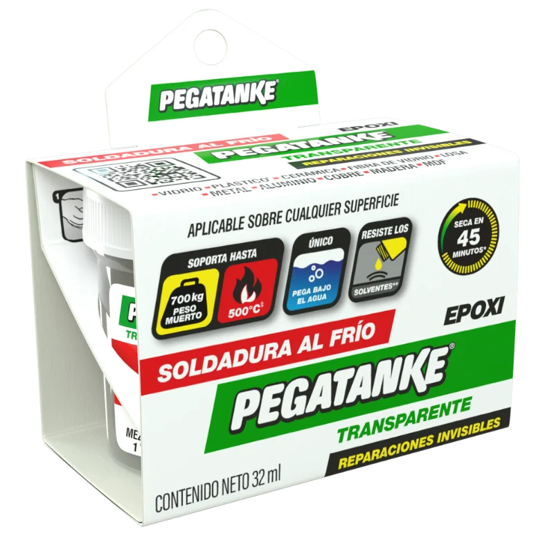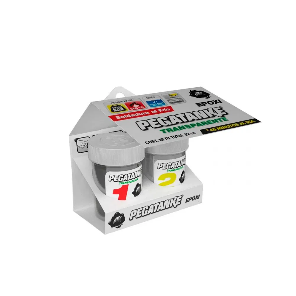 La soldadura al frío epóxica transparente Pegatanke es ideal para reparaciones resistentes y discretas, ya que ofrece un acabado transparente sin afectar la estética de la superficie. Perfecta para unir, sellar y rellenar sin necesidad de calor.
