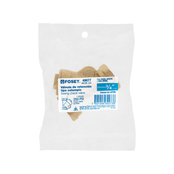 Válvula Check De Latón De 3/4′, Foset, 49077